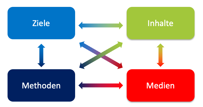 Welche Ziele (Lernziele / Förderung v. bestimmten Kompetenzen) möchte ich mit welchen inhaltlichen Schwerpunktsetzungen, durch welche Methoden und unter Nutzung welcher Medien erreichen?